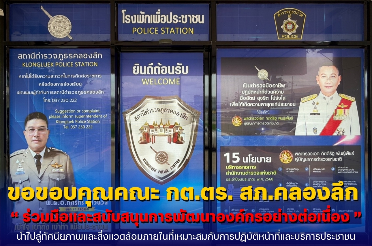 อ่านต่อทาง สถานีตำรวจภูธรคลองลึก ขอขอบพระคุณ คณะกรรมการตรวจสอบและติดตามการบริหารงานตำรวจ (กต.ตร.)...