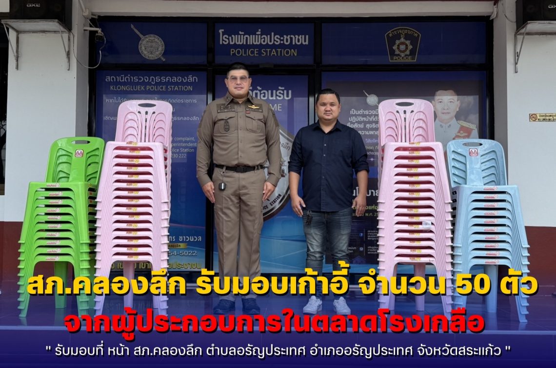 สภ.คลองลึก รับมอบเก้าอี้ จำนวน 50 ตัว จากผู้ประกอบการในตลาดโรงเกลือ