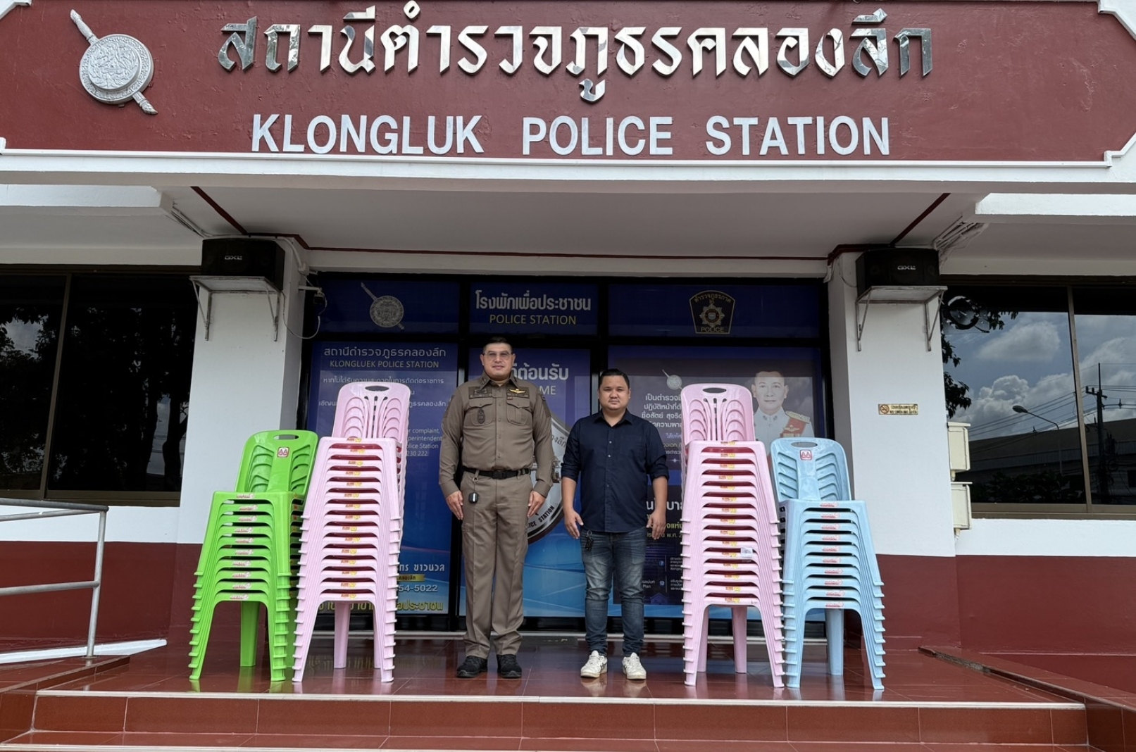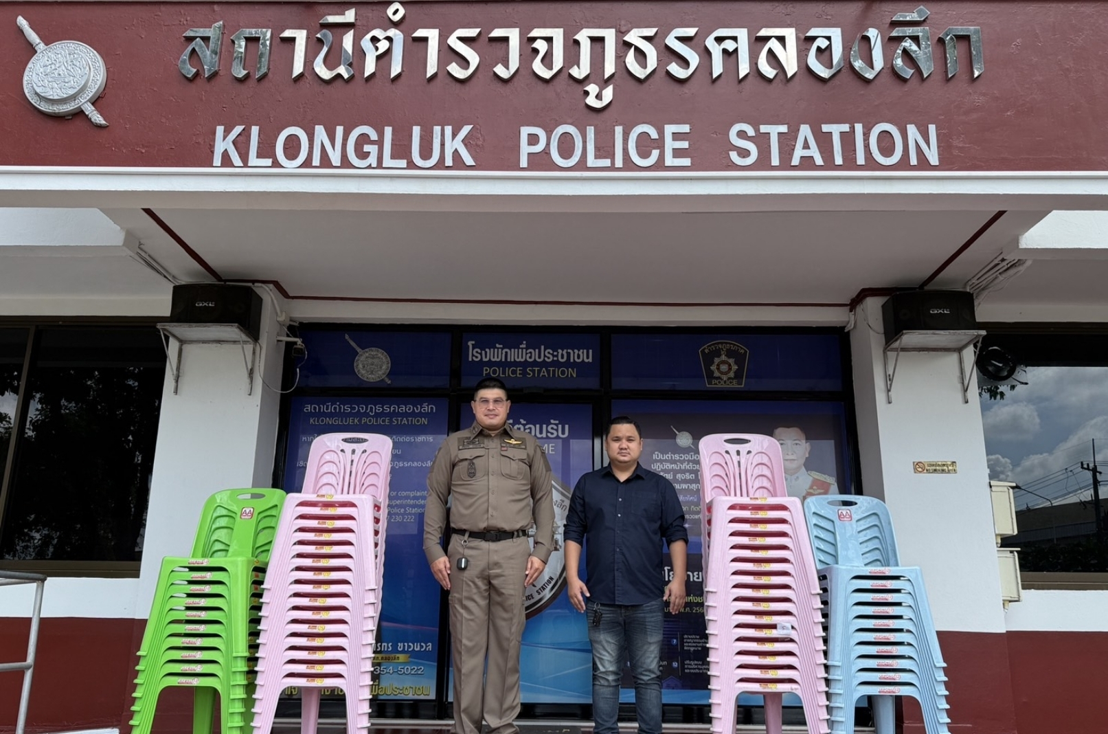 💙ด้วยความร่วมมือระหว่างภาคประชาชนและภาครัฐ ผู้ประกอบการในตลาดโรงเกลือได้ร่วมกันสนับสนุนเก้าอี้ จำนวน 50 ตัว ให้กับสถานีตำรวจภูธรคลองลึก เพื่อใช้ประโยชน์ในภารกิจด้านการบริการประชาชน และสนับสนุนการปฏิบัติงานของเจ้าหน้าที่ภายในสถานีตำรวจ