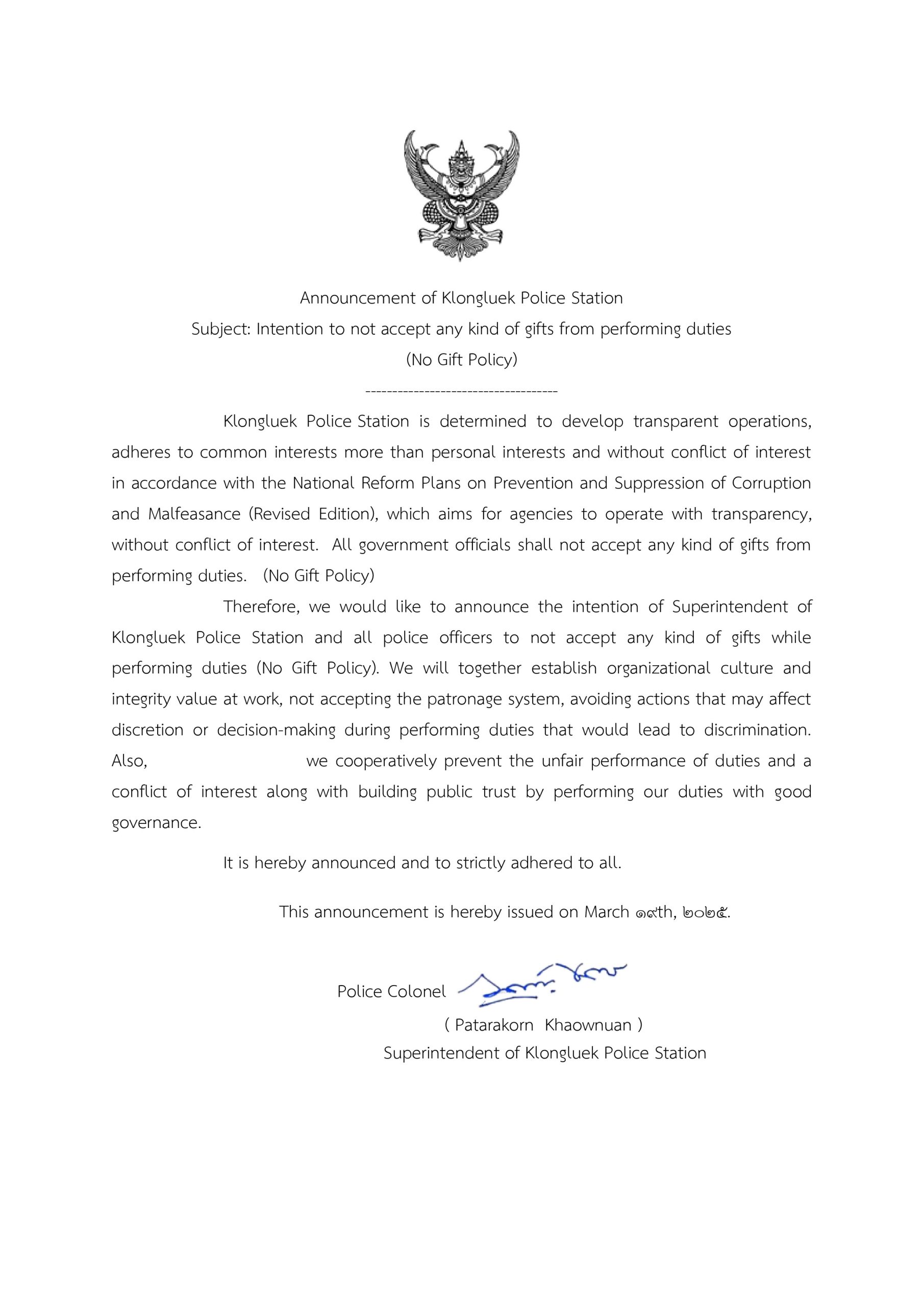 ไม่รับของขวัญและของกำนัลทุกชนิด